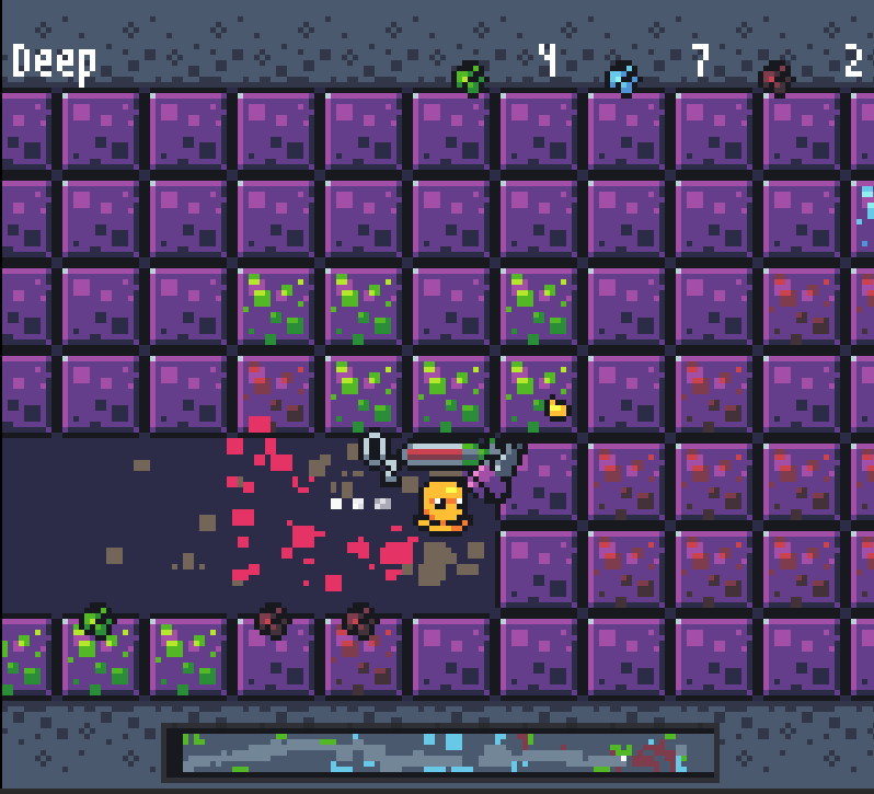 In Drill Bit you play as an alien at a strange planet in a miner/extractor game loop where you upgrade yourself and try to go deeper to find your ships parts and escape!
